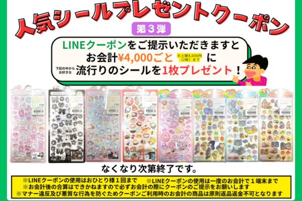【LINEクーポン】人気シールプレゼント!第3弾 2026年2月5日 編集者 【シールプレゼントクーポン】 抽選販売などの状況を鑑みまして、まだまだ人気シールの通常販売は危険と判断しております🙇♂️⚠️ 抽選に[…] もっと読む